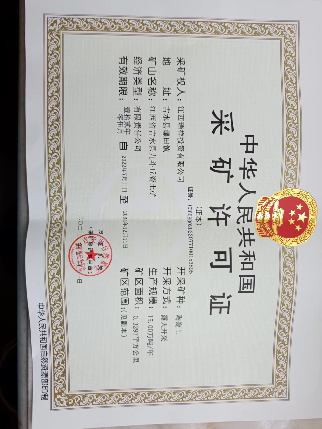 江西省吉水县九斗丘瓷土矿诚招合作伙伴